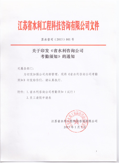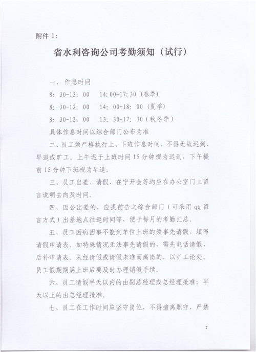 關(guān)于印發(fā)《省水利咨詢公司考勤須知》的通知