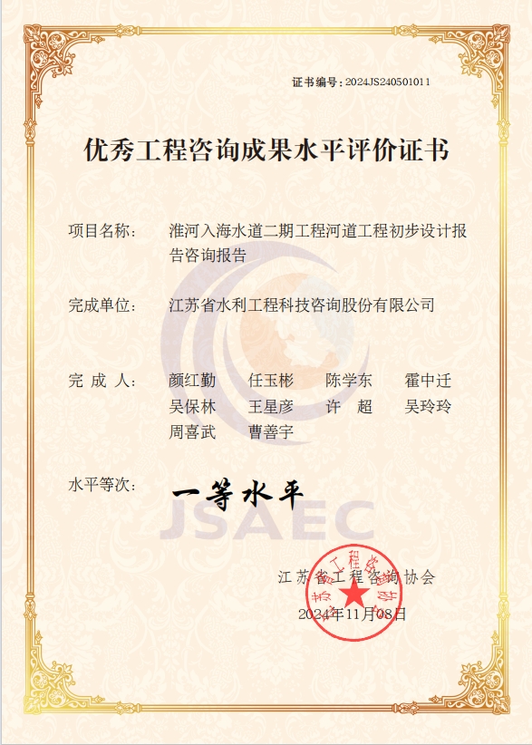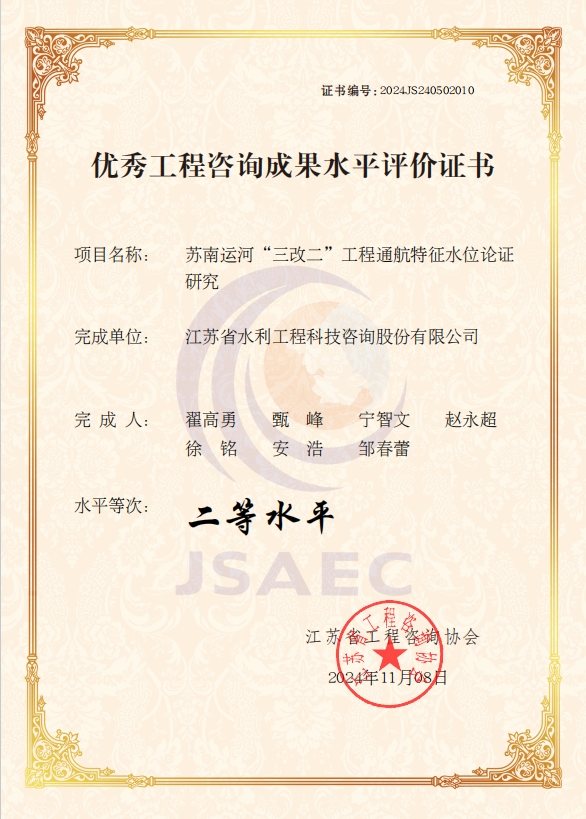 近日,2024年度江蘇省優(yōu)秀工程咨詢成果水平評選結(jié)果揭曉,我公司六個項(xiàng)目均榜上有名;春尤牒K蓝诠こ毯拥拦こ坛醪皆O(shè)計(jì)報(bào)告咨詢報(bào)告評為一等水平,蘇南運(yùn)河“三改二”工程通航特征水位論證研究評為二等水平,其余四個項(xiàng)目評為三等水平。
