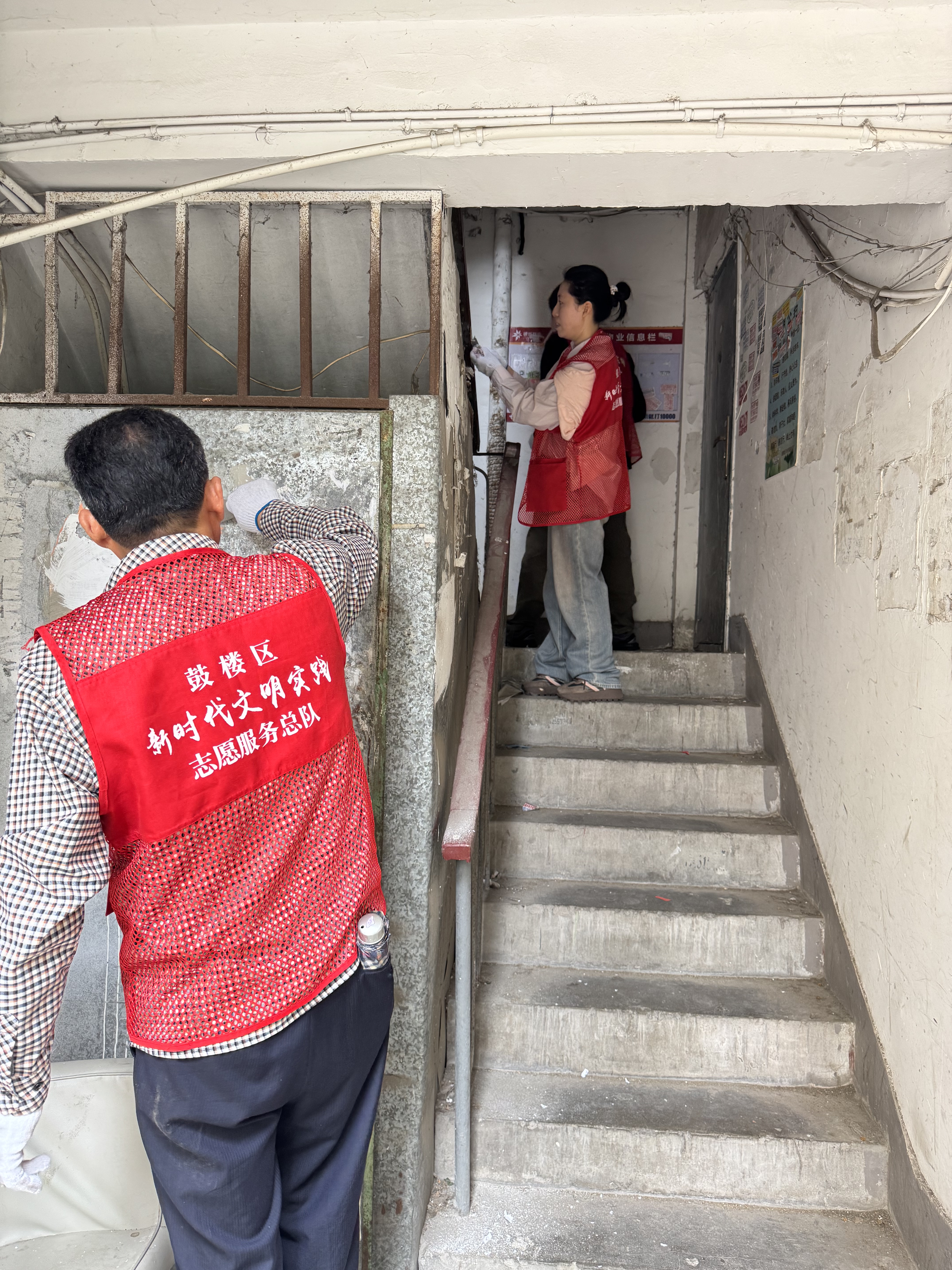 志愿者們分工合作,在鏟除了樓棟外墻和樓道內(nèi)張貼的“牛皮癬”小廣告的基礎上,還對墻壁重新進行了粉刷。經(jīng)過一上午志愿者們齊心協(xié)力,不放過任何衛(wèi)生死角的集中清掃勞動后,小區(qū)環(huán)境煥然一新,受到居民的稱贊,為創(chuàng)建和諧社區(qū)貢獻自己的力量。