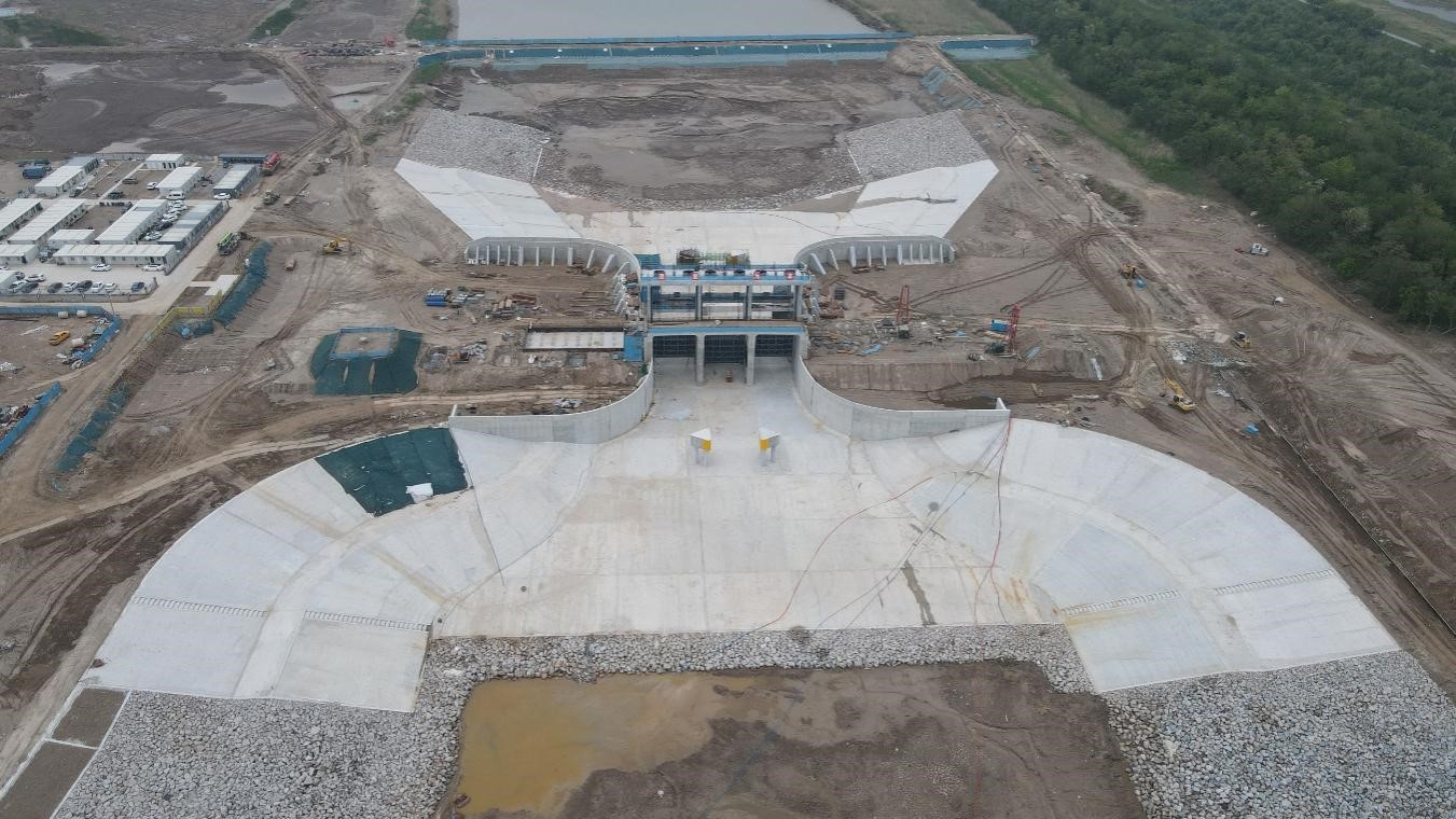 新洋港閘下移工程是國務院批準的《淮河流域綜合規(guī)劃》《淮河流域防洪規(guī)劃》中明確的里下河地區(qū)水利治理工程措施,被列為2022年、2023年、2024年省重大項目。工程主要建設內(nèi)容為:新建新洋港新閘1座,新建生態(tài)補水閘1座,拓浚新、老閘間引河8.18千米,拓浚閘下港道1.52千米, 新建引河兩側封閉海堤14.2千米,以及老閘處理和水系影響處理等。工程批復總概算投資15.39億元,總工期36個月。生態(tài)補水閘及保護區(qū)排水閘工程于2024年9月開始施工,2025年5月10日完成水下工程。工程通水驗收后,可盡快發(fā)揮工程效益。