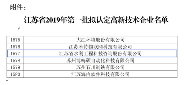 11月初,江蘇省2019年第一批擬認(rèn)定高新技術(shù)企業(yè)名單公示。經(jīng)過層層嚴(yán)格審查,公司憑借過硬的研發(fā)實(shí)力和創(chuàng)新能力,連續(xù)兩次榮獲由江蘇省科學(xué)技術(shù)廳、江蘇省財政廳、江蘇省國家稅務(wù)局、江蘇省地方稅務(wù)局聯(lián)合頒發(fā)的“國家高新技術(shù)企業(yè)”認(rèn)定證書。 公司今后將繼續(xù)引入高素質(zhì)人才團(tuán)隊,為自主創(chuàng)新提供根本保證,更加注重自主創(chuàng)新,保護(hù)知識產(chǎn)權(quán),提升企業(yè)核心競爭力。繼續(xù)加大科研投入,充實(shí)企業(yè)創(chuàng)新發(fā)展后勁,為企業(yè)持續(xù)、健康、快速發(fā)展提供強(qiáng)有力的技術(shù)支持,為江蘇水利科技發(fā)展貢獻(xiàn)應(yīng)有的力量。