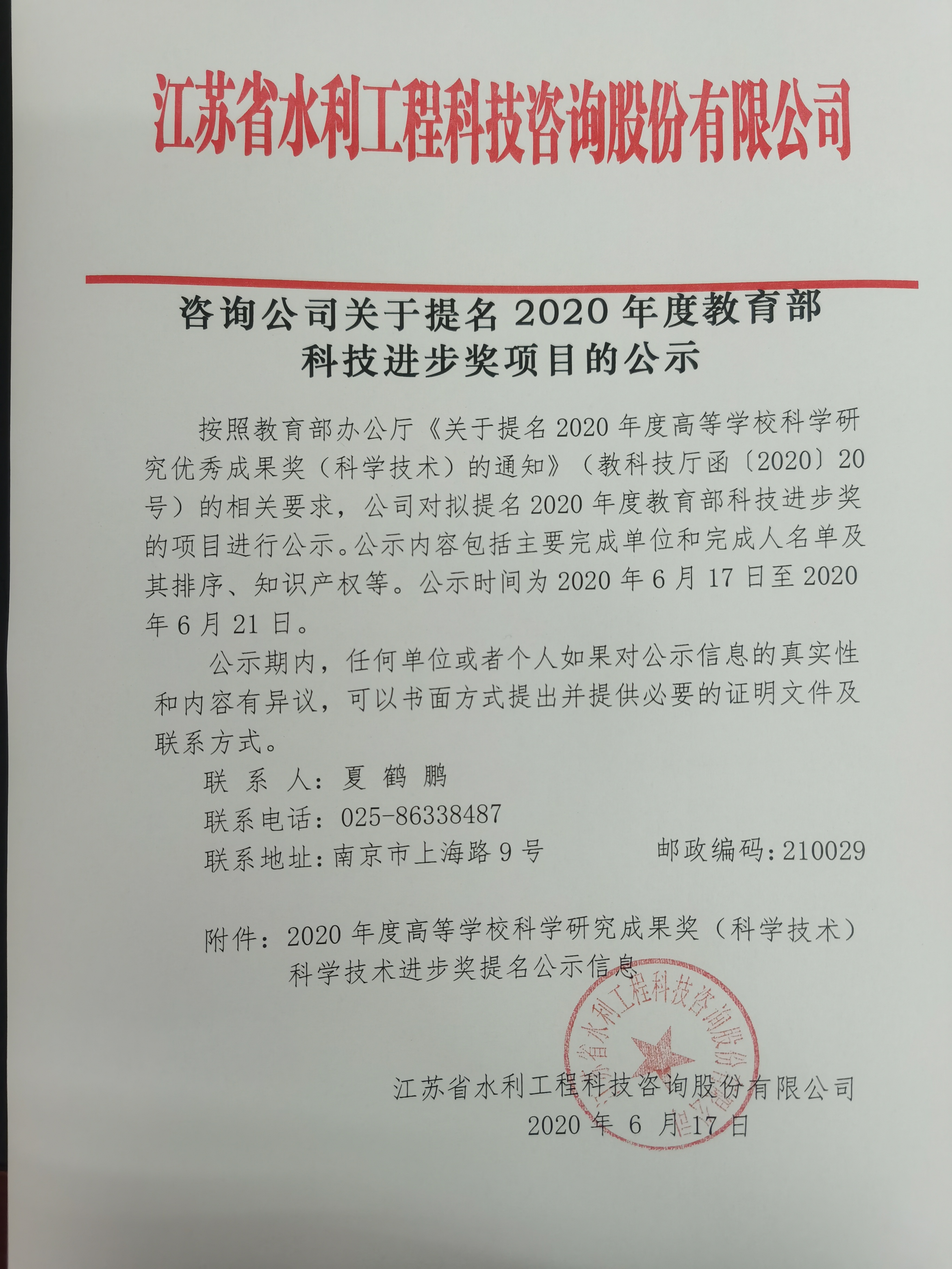 > 咨詢公司關(guān)于提名2020年度教育部科技進(jìn)步獎(jiǎng)項(xiàng)目的公示
