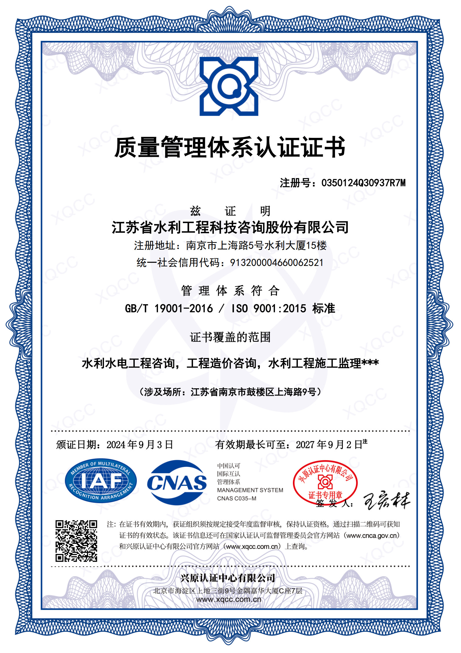 > ISO質(zhì)量管理體系認證證書
