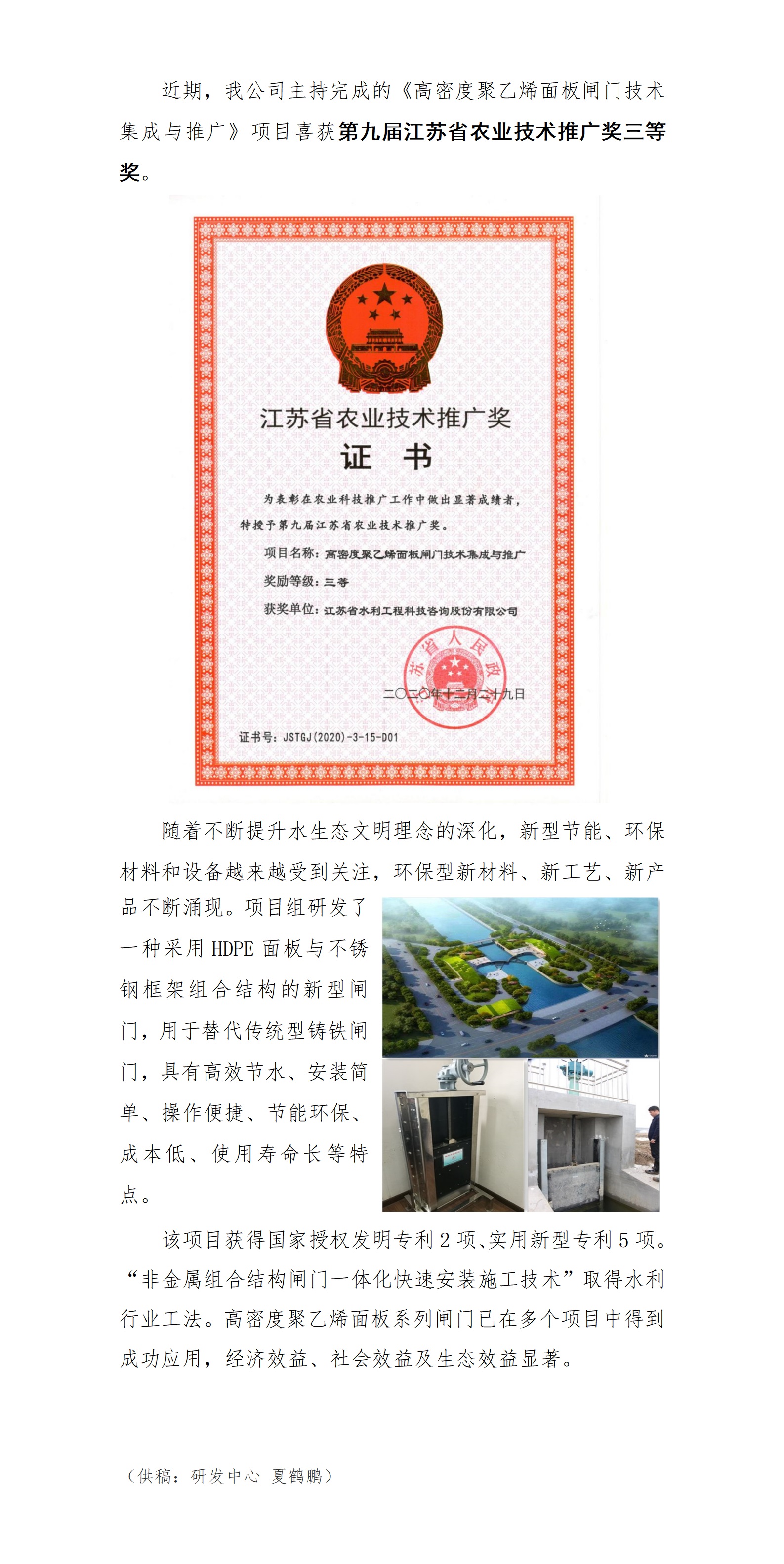 公司喜獲第九屆江蘇省農(nóng)業(yè)技術(shù)推廣獎(jiǎng)三等獎(jiǎng)