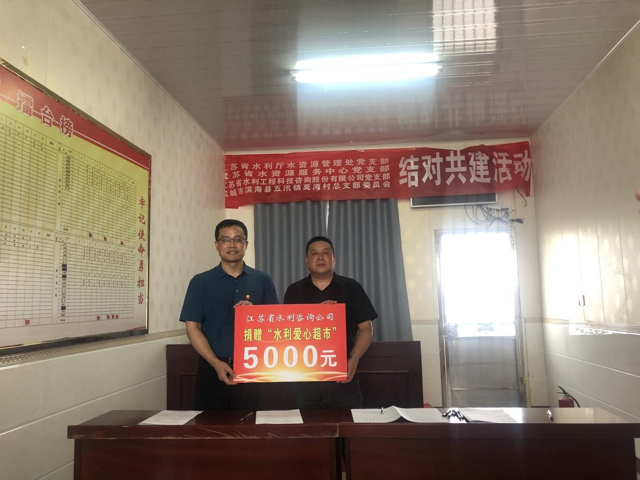 6月23日,公司黨支部書記、董事長兼總經(jīng)理顏紅勤與省水資源服務(wù)中心黨支部書記、主任李太民、廳水資源處副處長游洋共同帶領(lǐng)相關(guān)工作人員,前往濱?h五汛鎮(zhèn)莫灣村開展支部共建共融活動,以實際行動助力鄉(xiāng)村振興。 本次活動以加強支部共建共融為主題,在交流座談會上,共建四方分別介紹了支部黨建情況,協(xié)商了支部共建重點工作,提出了共建目標與具體方案。  顏紅勤表示在交流座談會上,共建是各方相互學習的重要途徑,我們將全力支持4個支部共建共融活動,以黨建促媒介,以共建為橋梁,充分發(fā)揮水利咨詢單位的資源優(yōu)勢,配合莫灣村在完善村莊規(guī)劃布局、智慧生態(tài)農(nóng)業(yè)建設(shè)等方面進行綜合規(guī)劃,用實際行動為莫灣村建設(shè)作貢獻。 座談會上,我公司向莫灣村捐贈了扶貧款兩萬元,同向莫灣村“水利愛心超市”捐贈了五千元愛心基金,助力莫灣村鄉(xiāng)村生態(tài)文明建設(shè)。