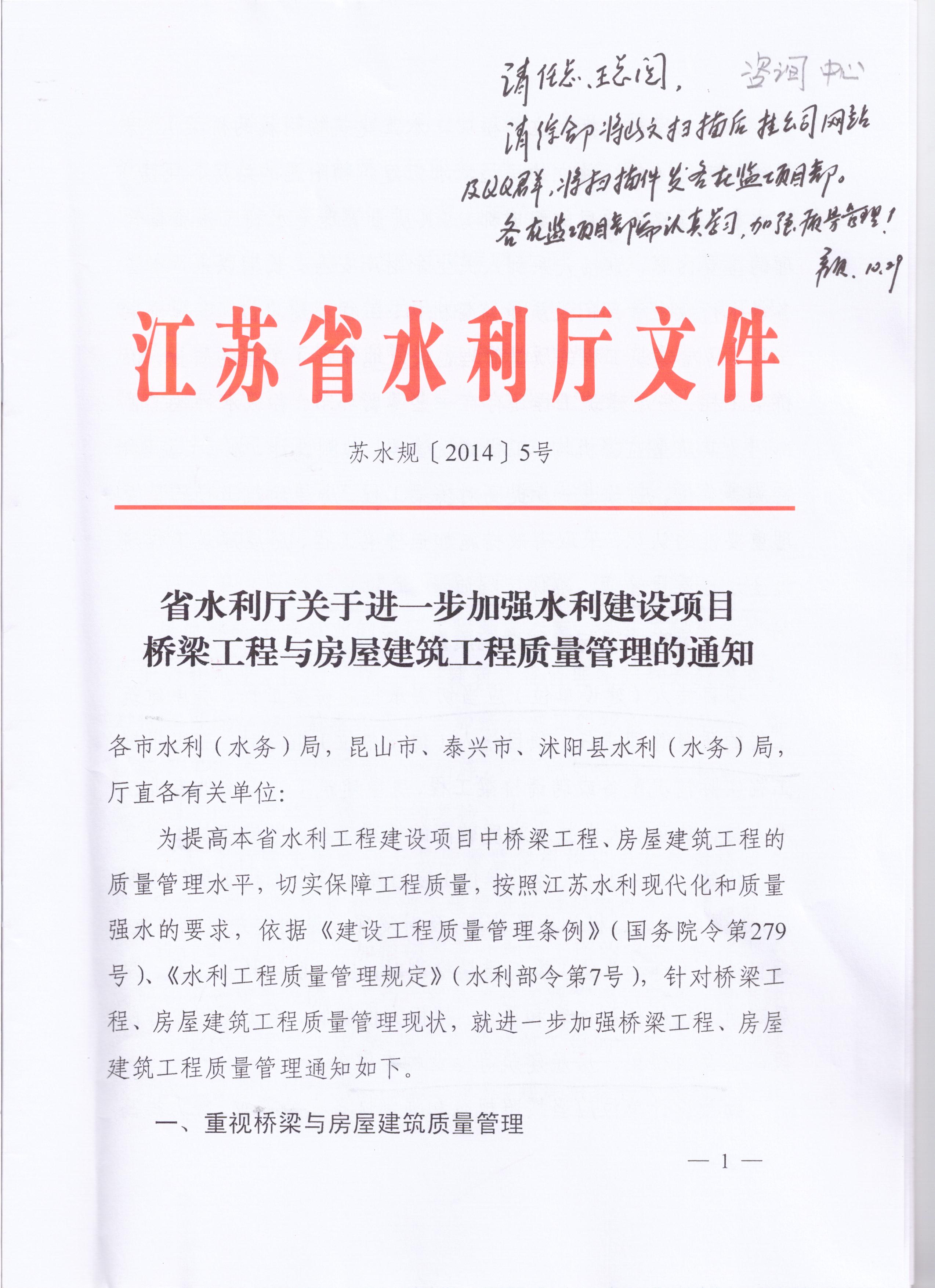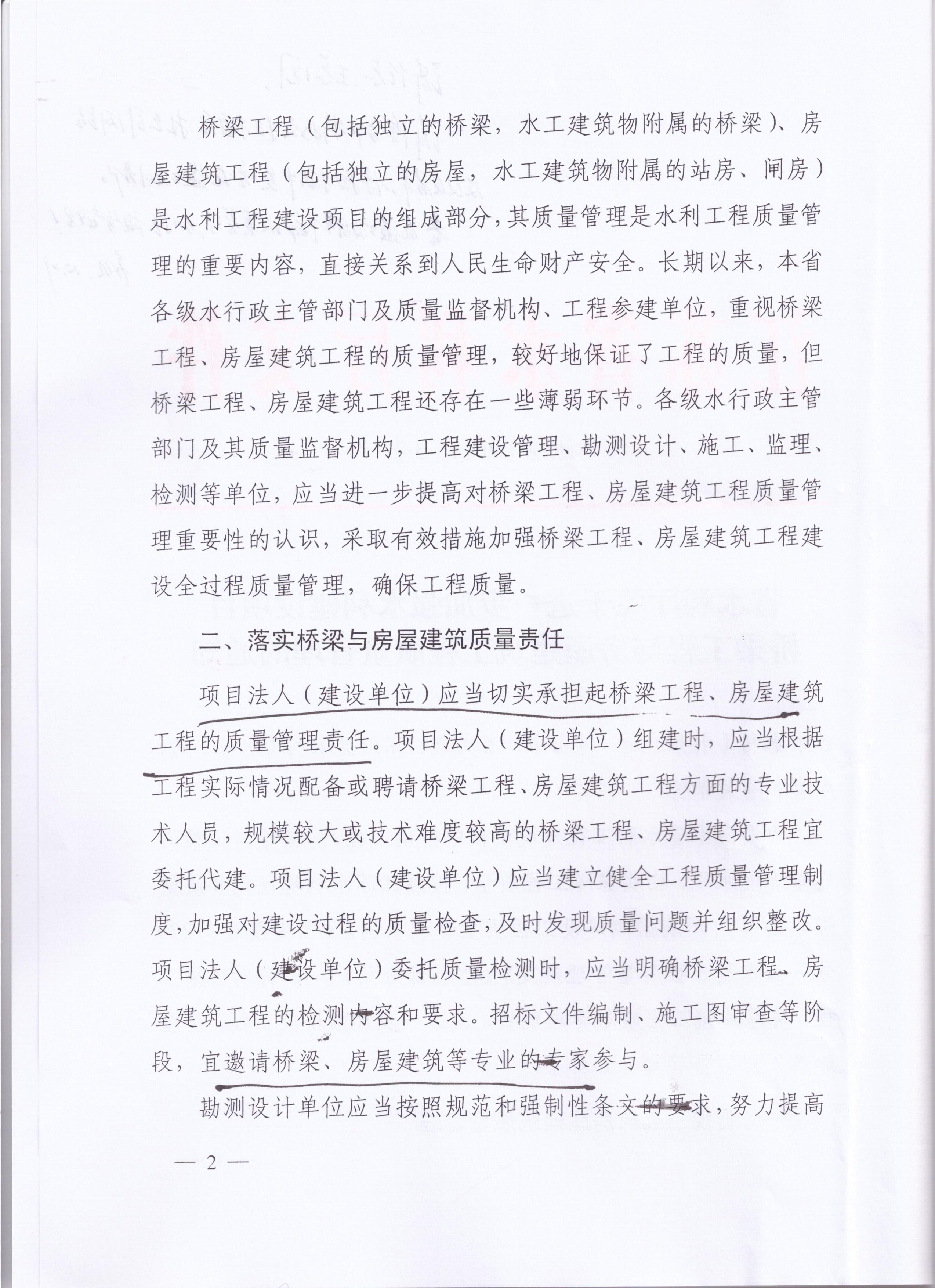 省水利廳關(guān)于進(jìn)一步加強(qiáng)水利建設(shè)項(xiàng)目橋梁工程與房屋建筑工程質(zhì)量管理的通知