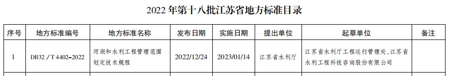 由我公司和江蘇省水利廳工程運行管理處合作編寫的《河湖和水利工程管理范圍劃定技術(shù)規(guī)程》正式發(fā)布。 江蘇省市場監(jiān)督管理局近期發(fā)布《江蘇省地方標準發(fā)布公告2022年第18號》,其中《河湖和水利工程管理范圍劃定技術(shù)規(guī)程》DB32/T 4402-2022(以下簡稱《規(guī)程》)正式發(fā)布!兑(guī)程》發(fā)布日期2022年12月24日,實施日期2023年1月14日。 《規(guī)程》主要內(nèi)容包括:范圍、規(guī)范性引用文件、術(shù)語和定義、一般要求、劃界、測繪、樁牌、數(shù)據(jù)處理、質(zhì)量檢測與評定、驗收10章和附錄。該《規(guī)程》的發(fā)布,對指導(dǎo)、規(guī)范今后河湖和水利工程管理范圍劃定工作的開展和落地具有重要指導(dǎo)意義,同時也是對現(xiàn)有行業(yè)標準的重要補充和創(chuàng)新拓展。  (供稿:設(shè)計分公司 徐玲玲 邱立波)