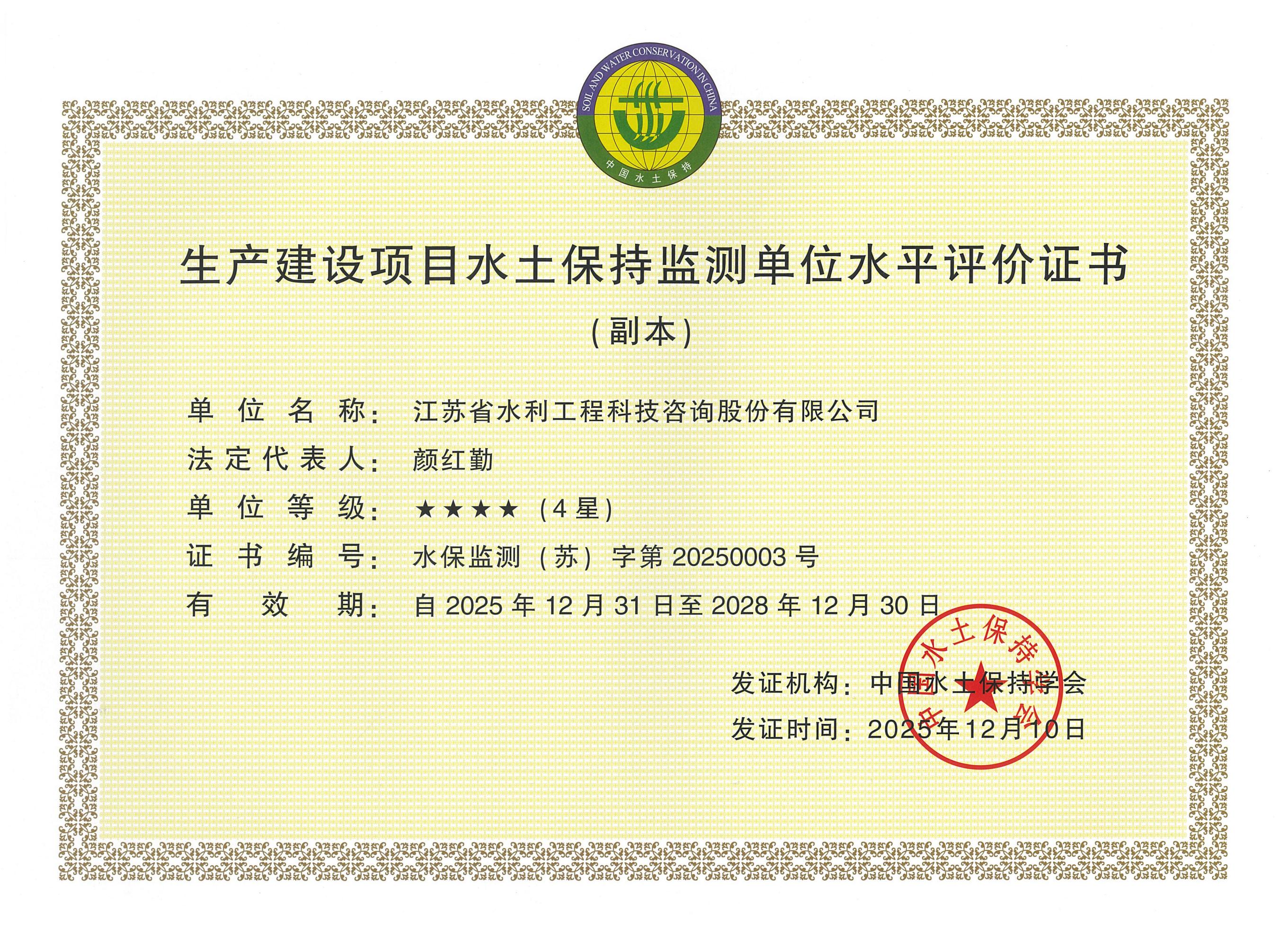 生產建設項目水土保持監(jiān)測單位水平評價證書